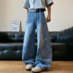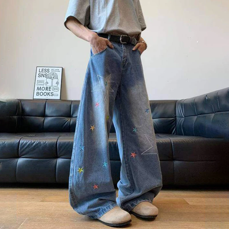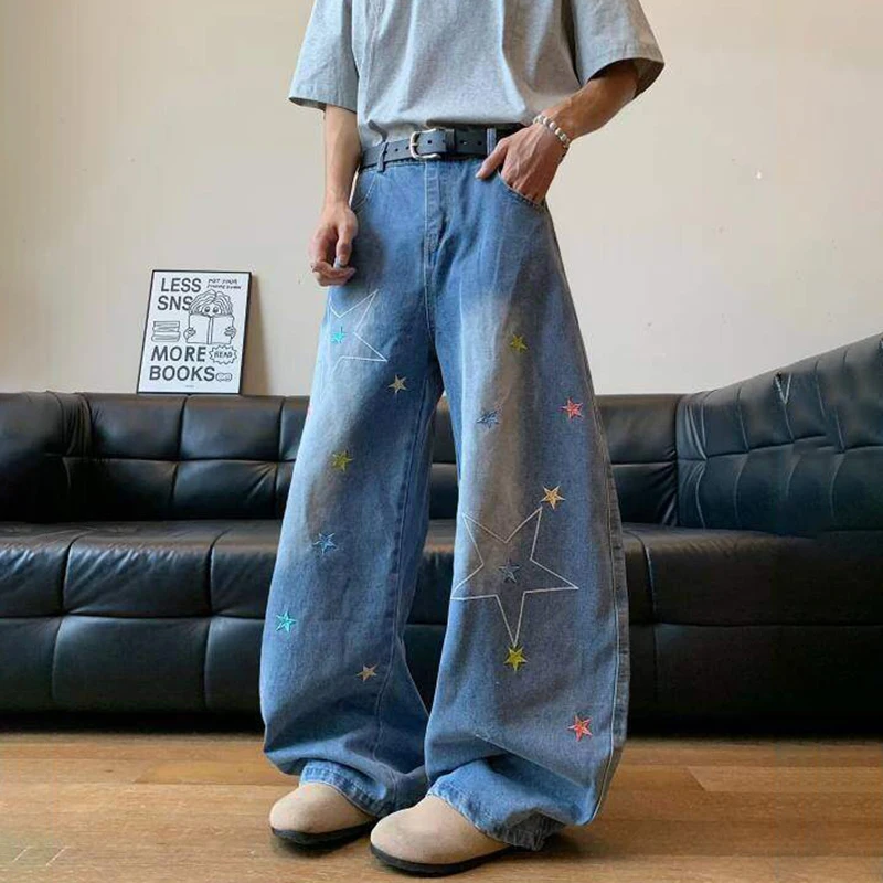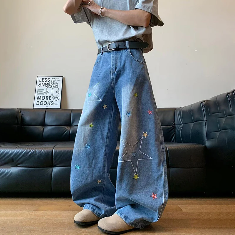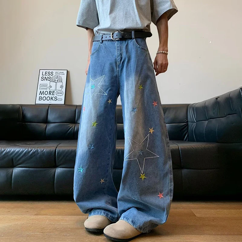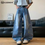 LUZHEN Colorful Five-pointed Star Printed Wide Leg Loose Casual Denim Pants Men’s 2025 New Washed High Quality Male Jeans JY2974