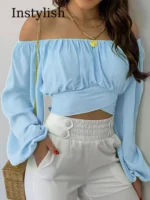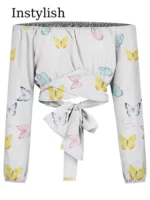 Be the first to review “Women Sexy Off Shoulder Printing Blouses Chic and Elegant Lantern Long Sleeve Lace Up Bow Cropped Tops Casual Slim Shirts 2023” Cancel reply