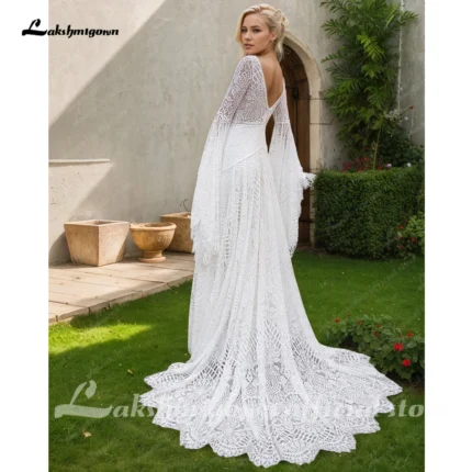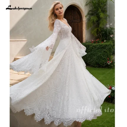 Lakshmigown Lace Boho Wedding Dresses for Women Bride 2026 Off Shoulder Long Sleeve Backless Bohemian Bridal Gowns Customized