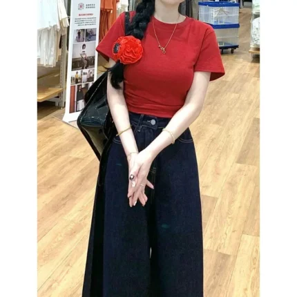 Wide-Leg Pants Hot Girl Loose Jeans Retro American Style Jeans Women Long Women High Waist Straight Denim Pants