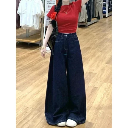 Vintage Wide-Leg Jeans Women’s Loose-Fit High-Waisted Slimming Casual Straight-Leg Long Pants Trendy On The Ground