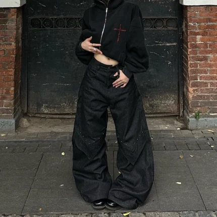 Black Jeans Women American Style Y2K 90S Vintage High Waisted Jean Straight Trouser Streetwear Casual Loose Wide Leg Denim Pants