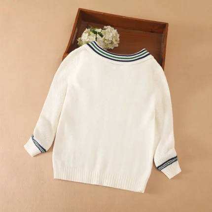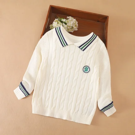 Boys’ Knitted Pullover Sweater Warm Autumn Winter Lapel Striped Trim New Kids Fashion 2025