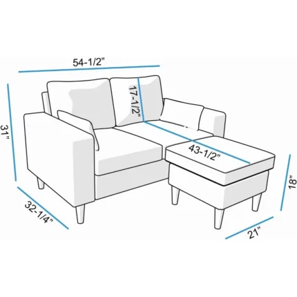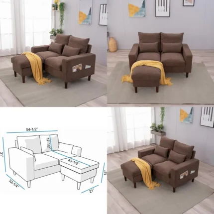 Brown Loveseat Sofa Chair with Ottoman, 2 Seater Double Seat Furniture Armchair Couch Set for Comfortable Seating